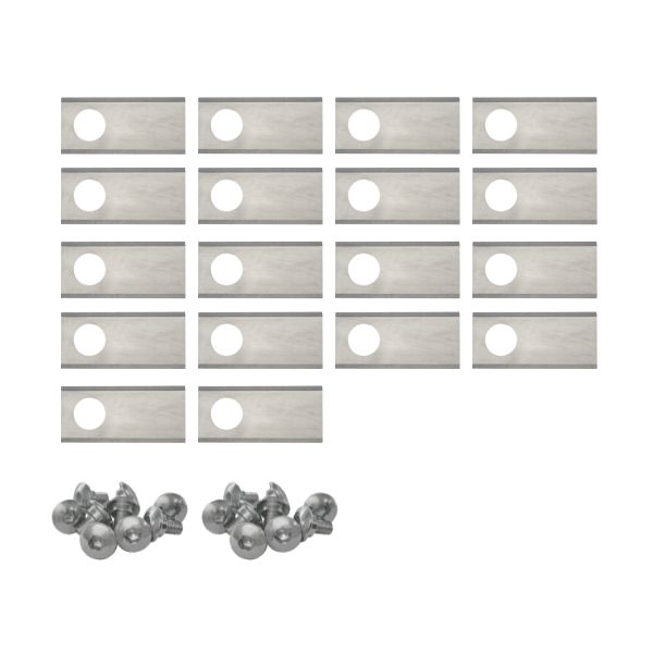 Set van 18 stalen mesjes voor robotmaaiers van het merk Honda Miimo. De mesjes zijn van 0.6 mm massief staal, waardoor ze erg sterk zijn. Ook zijn de mesjes aan beide kanten geslepen, zowel onder als boven, dit maakt het resultaat nog net iets beter.