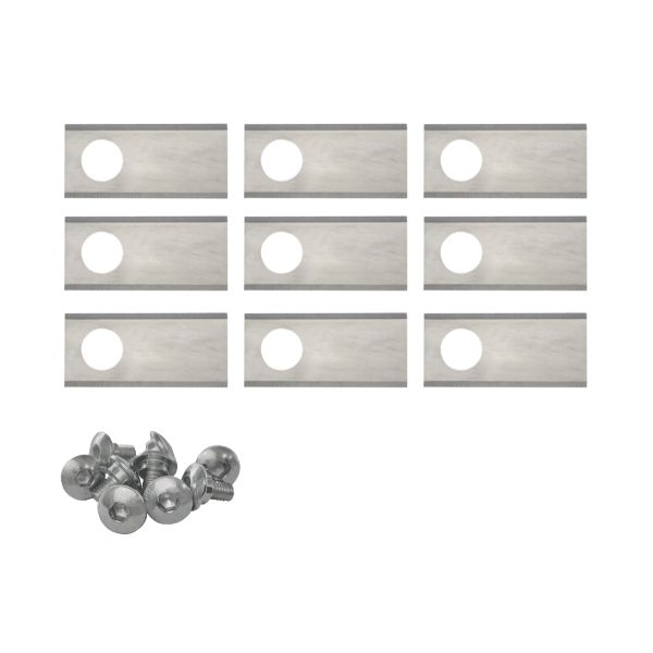 Set van 9 stalen mesjes voor robotmaaiers van het merk Honda Miimo. De mesjes zijn van 0.6 mm massief staal, waardoor ze erg sterk zijn. Ook zijn de mesjes aan beide kanten geslepen, zowel onder als boven, dit maakt het resultaat nog net iets beter.