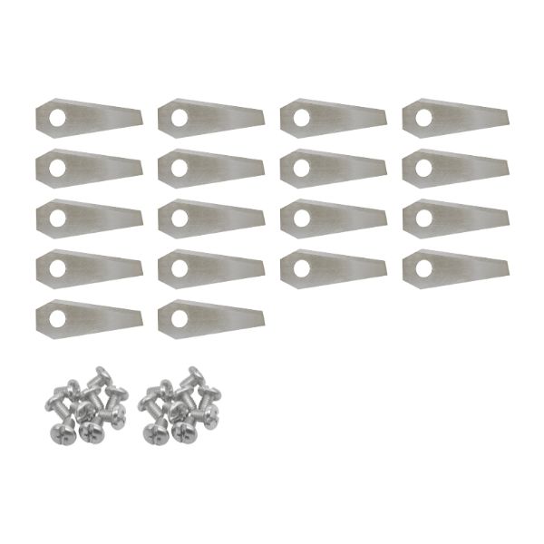 Set van 18 mesjes voor robotmaaiers van het merk Honda Miimo. De mesjes zijn van 0.6 mm massief staal, waardoor ze erg sterk zijn. Ook zijn de mesjes aan beide kanten geslepen, zowel onder als boven, dit maakt het resultaat nog net iets beter.