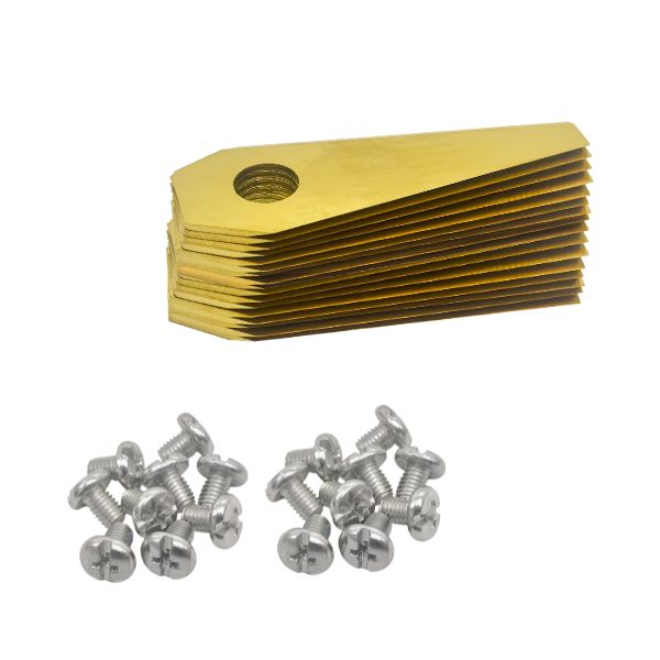 Robotmaaier mesjes voor Honda – Set van 30 titanium gecoat – nieuw type zijn voorzien van een titanium coating en zijn aan beide kanten geslepen. Hierdoor zijn de mesjes extra sterk en gaan ze langer mee. Dankzij deze eigenschappen kunt u blijven genieten van een optimaal maairesultaat van uw Honda robotmaaier.